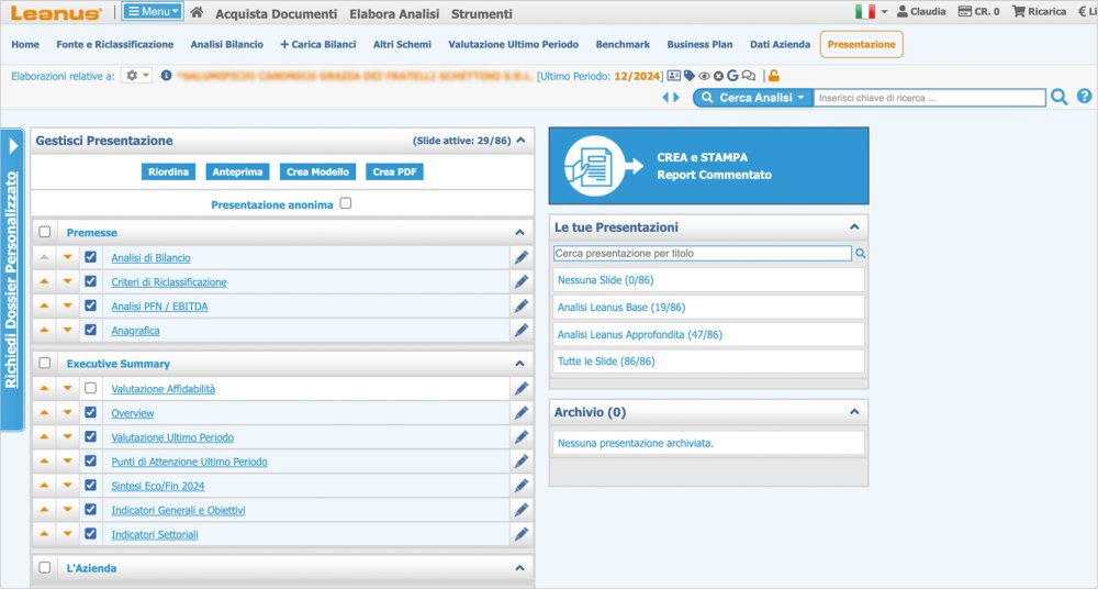 Leanus allows you to create and archive personalized presentations. The customizations concern: