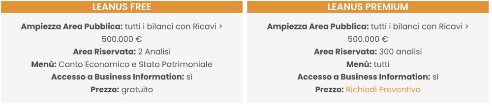 During the trial period you will be able to endless business research and analysis. In your Reserved Area, for two companies of your choice, you will be able to use all the features that include the Business Crisis Indicators, Financial Statement, DSCR Calculation, Benchmark, Business Plan, MCC Band and much more.