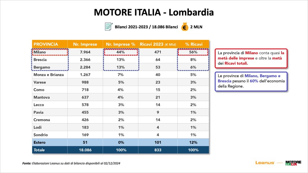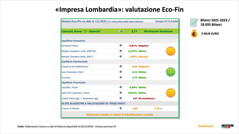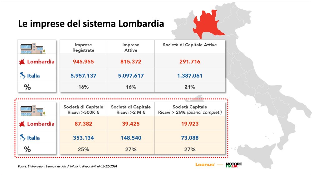 «In Lombardy – continued the administrator and founder of Leanus – there are 800 thousand companies active on the approximately 5 million Italians. Three provinces, Milan, Brescia and Bergamo are worth 63% of the companies and 70% of the revenues. The Lombardy company is very solid in terms of finances, with an excellent EBITDA and an excellent operating cash flow."
