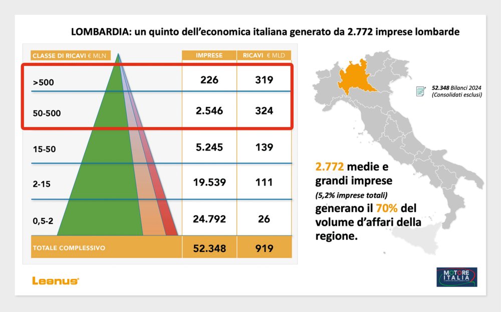 In Lombardy, a significant part of the economy it is concentrated in 2.772 medium and large companies. Although it represents only 5,2% of the total, They are responsible for 70% of the regional turnover. This shows how the economic heart of the area is driven by structured and high-performing companies.