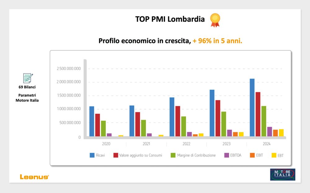 Lombardy's top SMEs show extremely solid growth: +96% over the last five years. Not only has turnover grown, but so has added value, contribution margin, and EBITDA. A path of constant development that strengthens the competitiveness of the entire region.