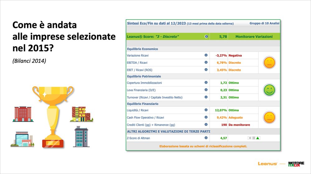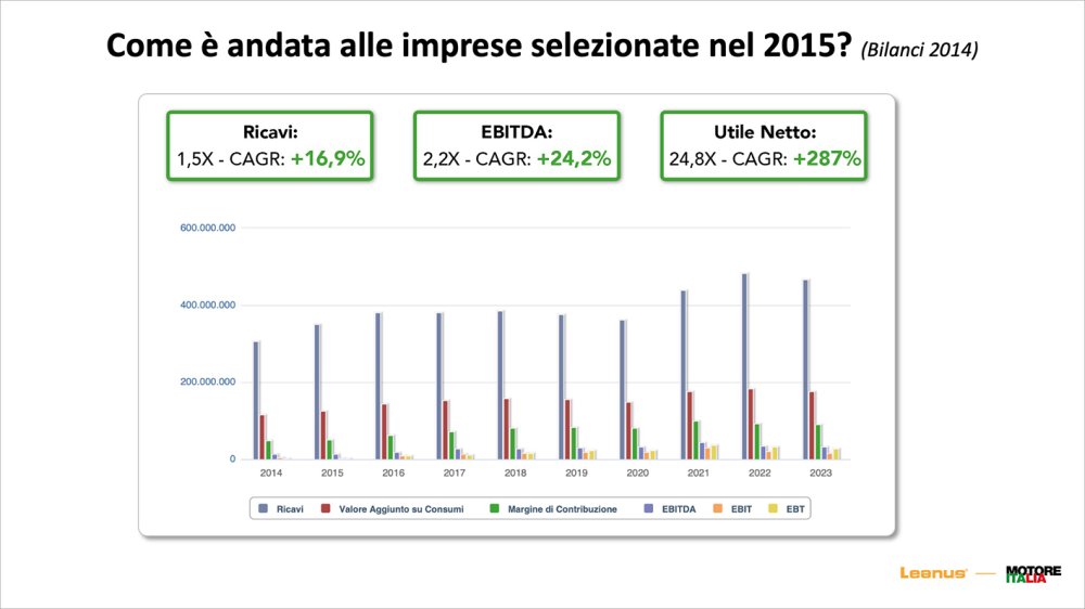 The analysis carried out by Leanus then focused on the performance of some companies in the last decade: «The companies we selected in 2015 they have maintained an excellent economic-financial profile in these 10 years and have maintained a positive trend both in terms of revenues and EBITDA and net profit".