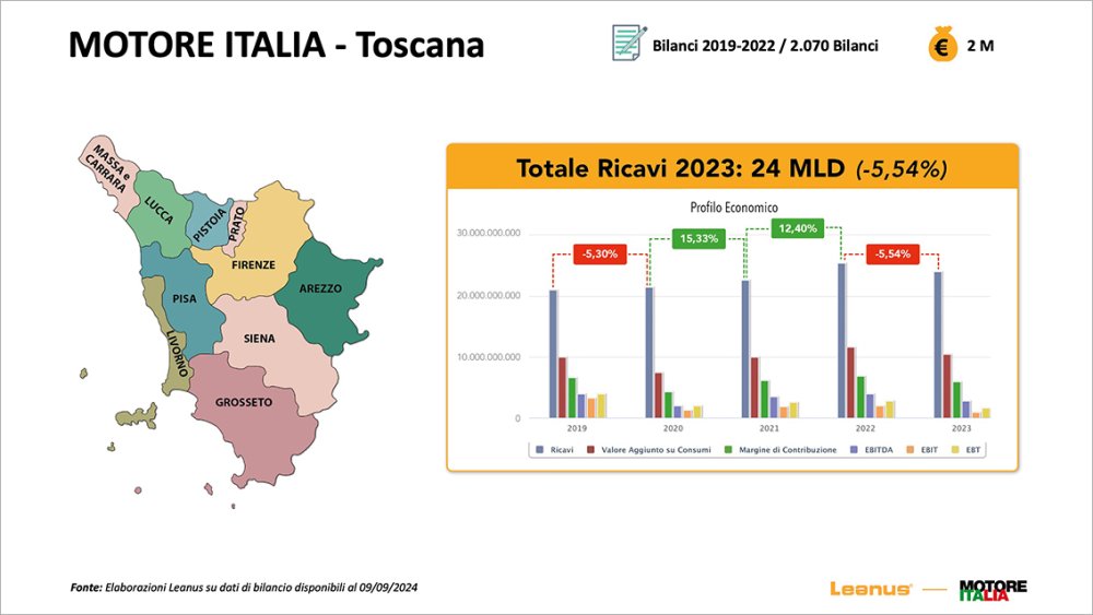 Alessandro Fischetti, Leanus Administrator, he was a guest of Motor Italy Tuscany to discuss the regional business system and to present the research and data analysis of the Milano Finanza rankings.