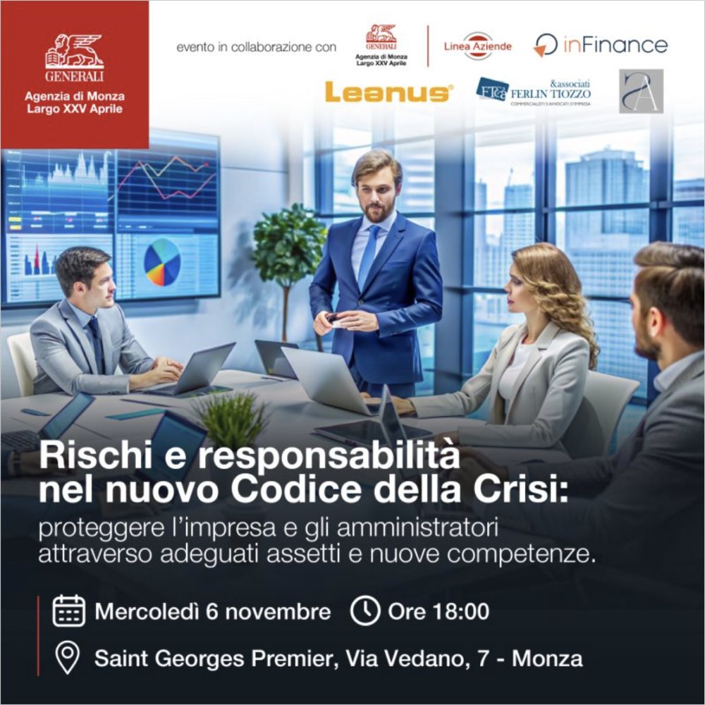 An initiative organized by Ag Generali Monza Largo XXV Aprile – Linea Aziende, with the collaboration of inFinance - Leanus - Ferlin Tiozzo & Associates e Savarese Law Firm.