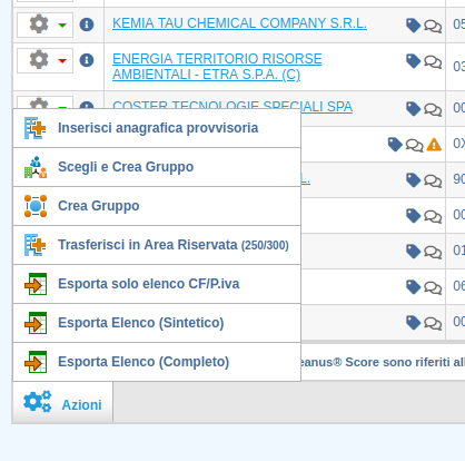 Identify a list of Companies in the PUBLIC AREA through filters or from the Groups Menu / List of Companies belonging to the Group and transfer them in Batch