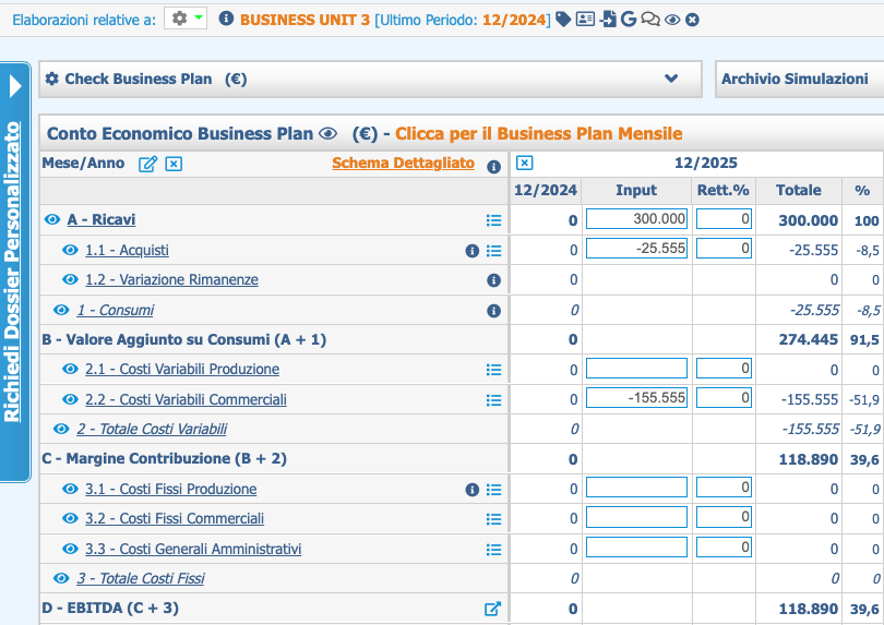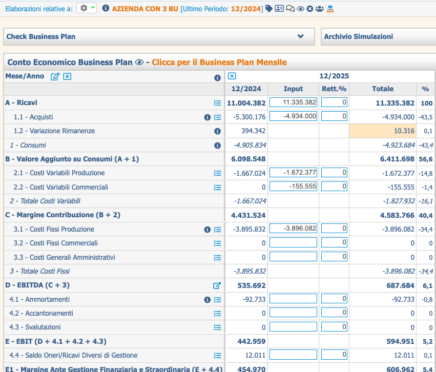 El valor 11.335.382 El importe de los Ingresos correspondientes al ejercicio 12/2025 se obtiene sumando los últimos datos contables relativos al ejercicio 12/2024 (11.004.382), los insumos de las 3 Unidades de Negocio, a saber: