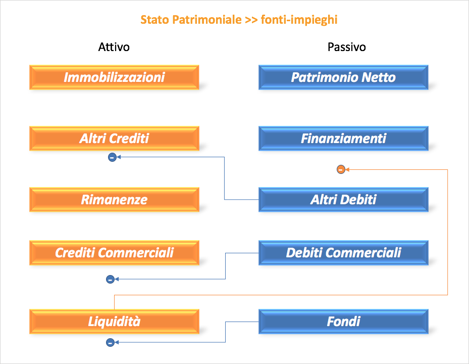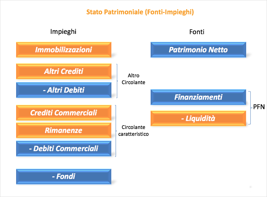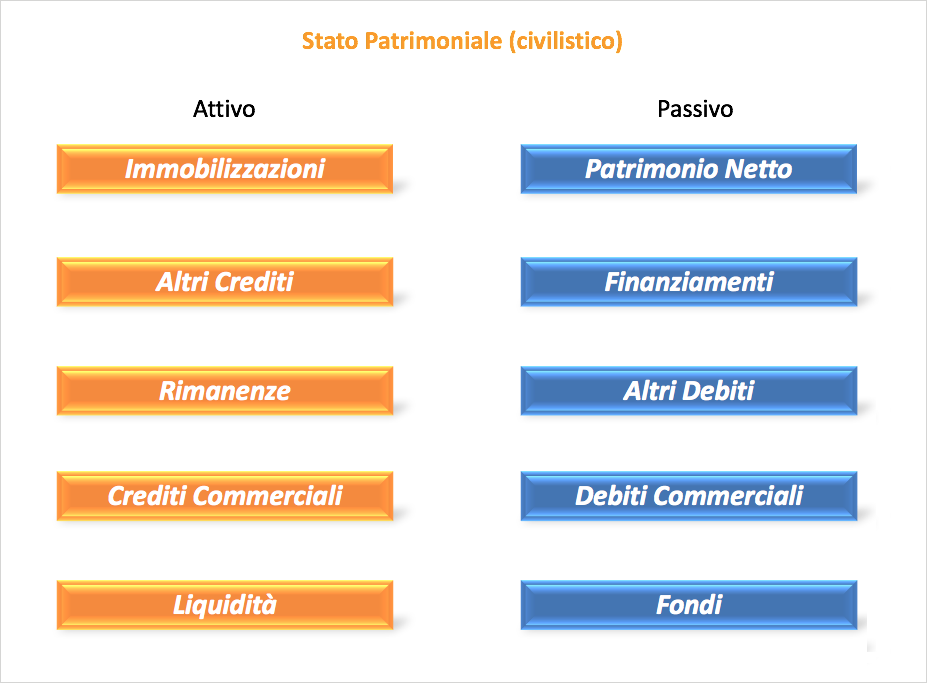 La siguiente imagen muestra un esquema legal convenientemente simplificado. Los artículos están representados en naranja. de los ACTIVOS, en azul los de PASIVO.