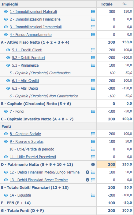 - Otras Deudas (Seguridad Social, Impuestos, etc.) se restan de Otras Deudas para obtener la característica NO Característica capital de trabajo (de Pasivos a Empleo)