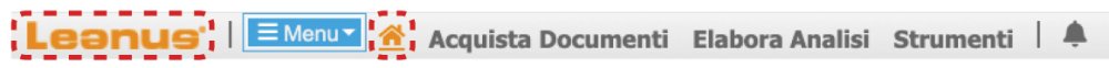 La página de inicio general de Leanus es una página de acceso a varias funciones del sistema. En el área pública, es posible utilizar la búsqueda para buscar negocios por nombre o código fiscal, acceder al menú de búsqueda con filtros y acceder al menú de búsqueda de servicios de la cámara de comercio como registros y protestas. En el área reservada, también es posible cargar archivos de balance o situaciones contables para procesar con Leanus. Siempre se puede acceder a la página de inicio general haciendo clic en el logotipo o en el símbolo "Inicio" en la primera línea del menú en la parte superior izquierda.