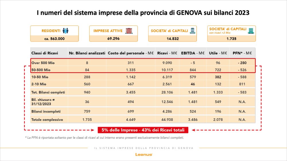 - Descubra los resultados de unaAnálisis en profundidad realizado por Leanus sobre los estados financieros 2023 – 2024 de las empresas de la provincia de Génova; (descarga el pdf aquí)