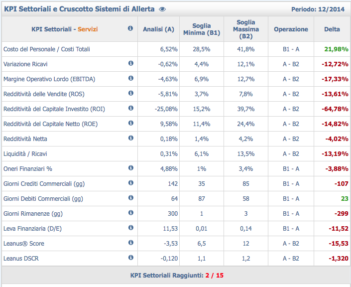 Los indicadores son personalizables en AREA RESERVADA – La comparación con los objetivos (KPI) y los indicadores de crisis están influenciados por las posibles personalizaciones realizadas en el modelo de reclasificación.