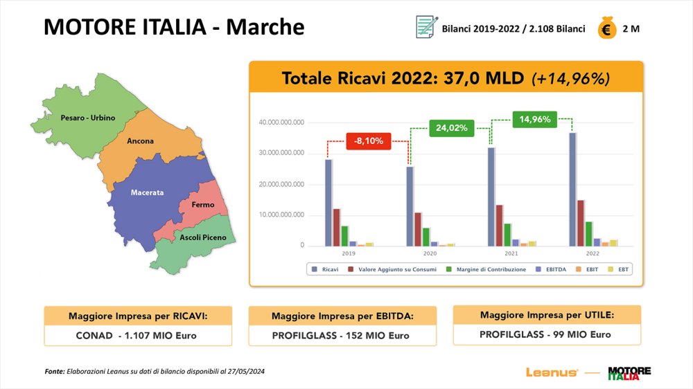 Estas son algunas cifras que surgieron de la investigación: las empresas de la región de Las Marcas han logrado i 37 mil millones en ingresos en 2022, obteniendo un + 14,96% respecto a 2021, que a su vez ya había crecido un + 24% en comparación con 2020.