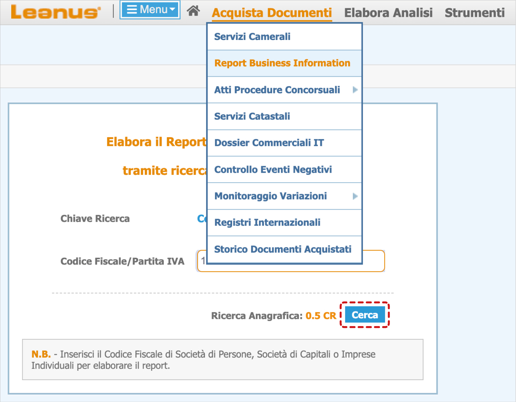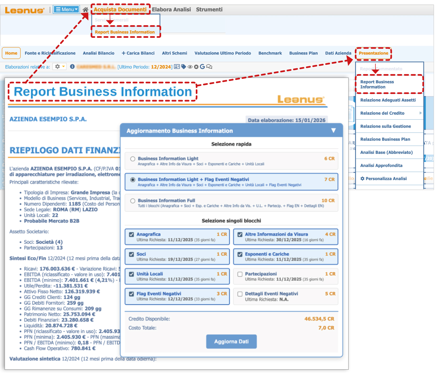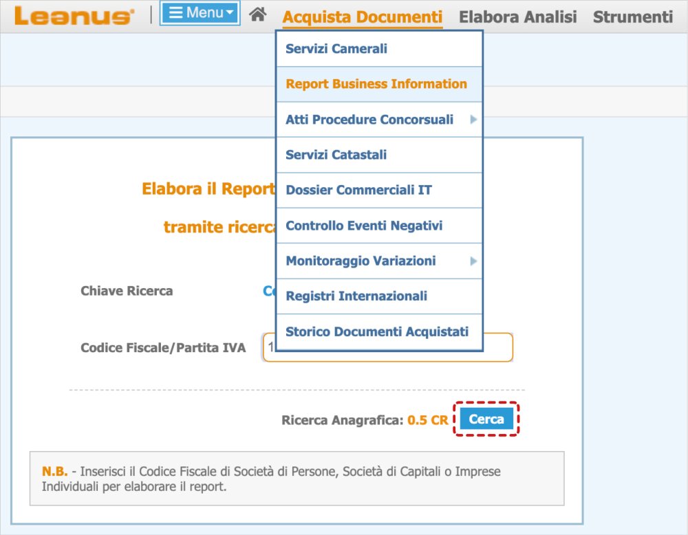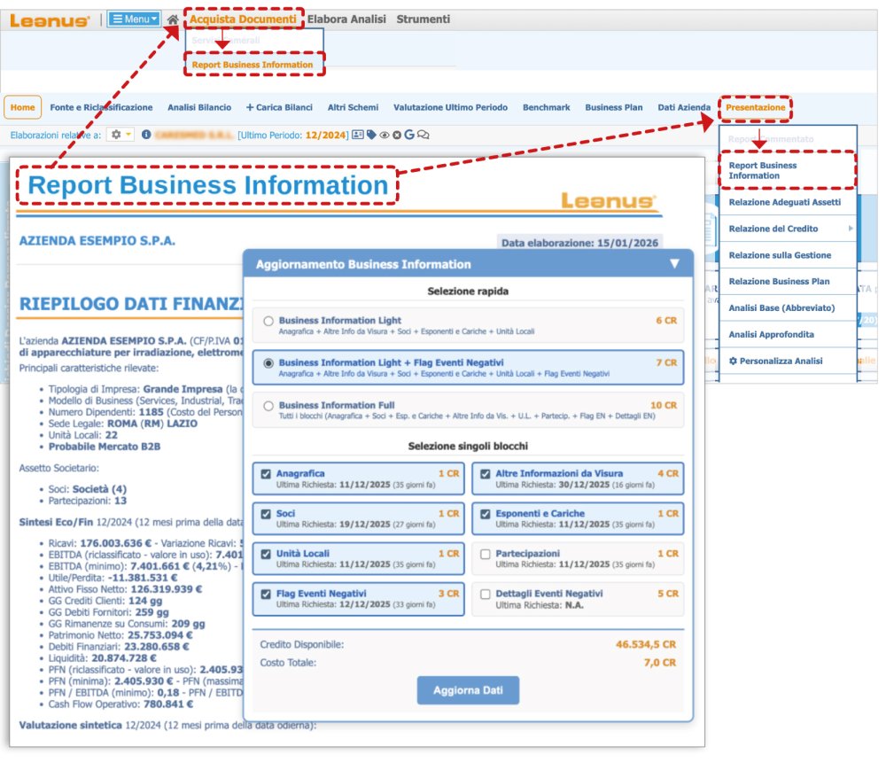 Selección Informe de información empresarial del menú Comprar documentos