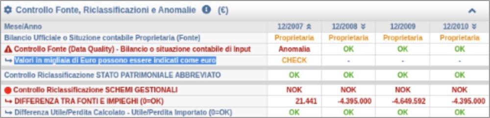Nella pagina Fonte e Riclassificazione » Riclassificazione su Schemi Gestionali (->), la procedura prevede la presenza una nuova icona, accanto a mese/anno, che permette di moltiplicare / dividere per 1.000 il singolo periodo. La funzione è disponibile solo per le analisi per cui è stata riscontrata l’anomalia per almeno un periodo.