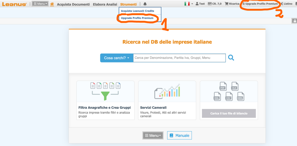 Dopo l’accesso clicca sul menu “Strumenti / Upgrade al Profilo Premium”