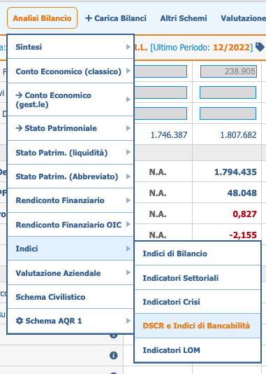 Il calcolo del DSCR è disponibile nei seguenti menu: